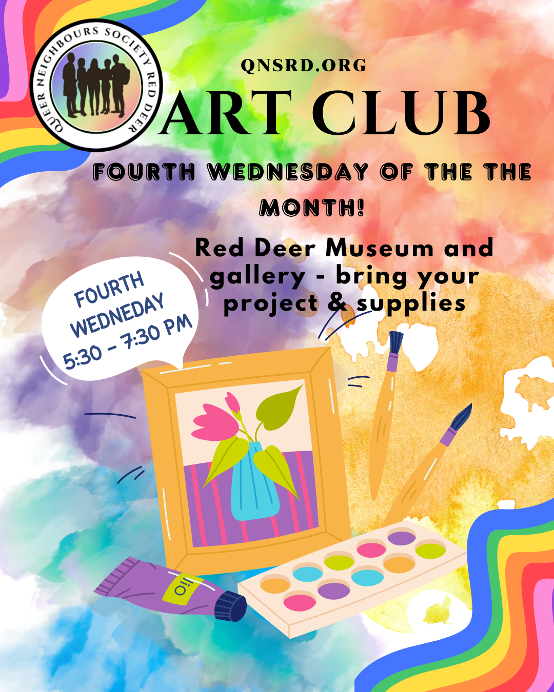 QNSRD brings you Art Club at the Museum! Now the fourth Wednesday of each month, meet at the Red Deer Museum and Gallery to get arty! Bring a project you'd like to start or work on. Some craft materials may be provided. Note the time change from 5:30-7:30 PM.