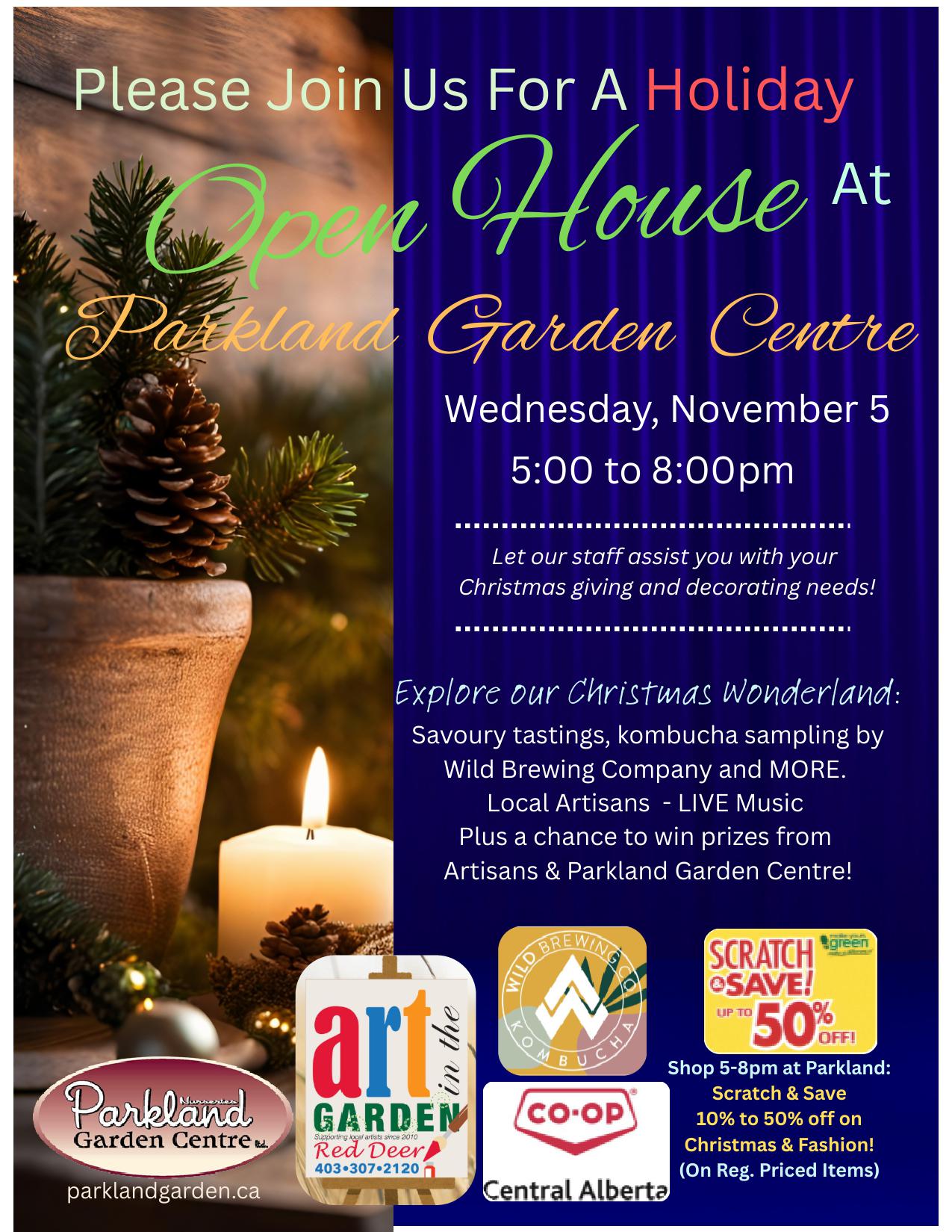 Please Join Parkland Garden Centre for a Holiday Open House on Wednesday, November 5 from 5:00pm to 8:00pm.