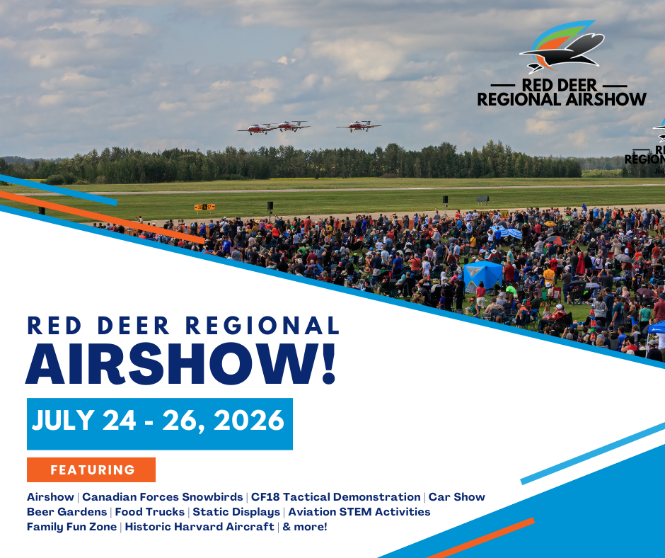 The Red Deer Regional Airshow returns July 24–26, 2026, to the Red Deer Regional Airport, featuring the iconic Canadian Forces Snowbirds!