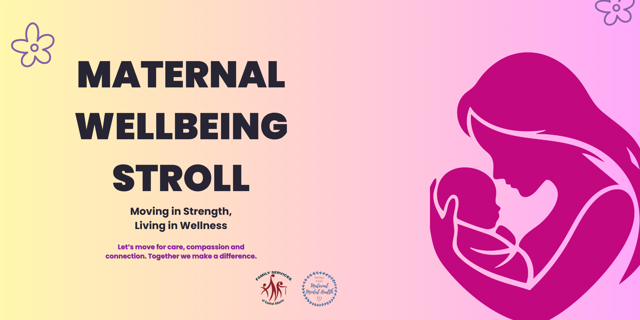 Red Deer’s Maternal Mental Health Stroll began in 2021 as Flora’s Walk. Today, we continue this important movement in solidarity with communities across Canada throughout the month of May. Together, we walk to raise funds for vital perinatal mental health services, and to honor the memory of Flora, a Canadian mother whose life was tragically lost to undetected and untreated postpartum psychosis.