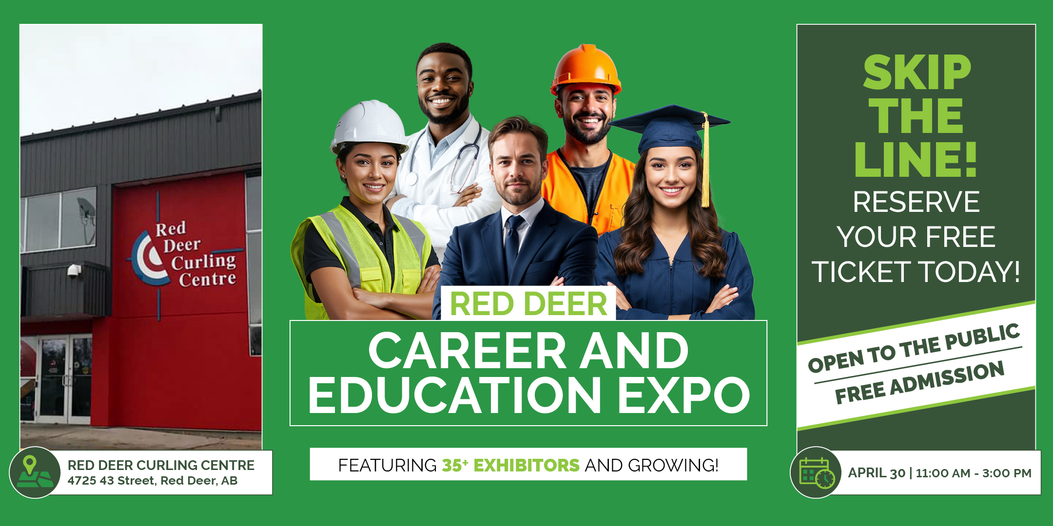 Get your Free tickets and join us on April 30, 2026, at the Red Deer Curling Centre, A.B. for the Career and Education Expo.